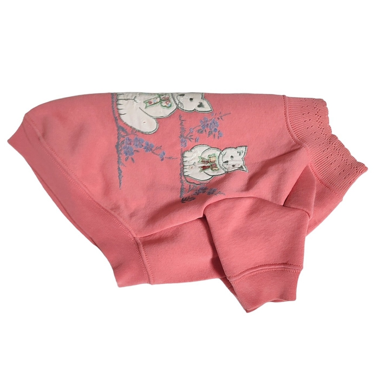 ネコ 花 パッチワーク ラバープリント 刺繍 ドッグ スウェットシャツ
