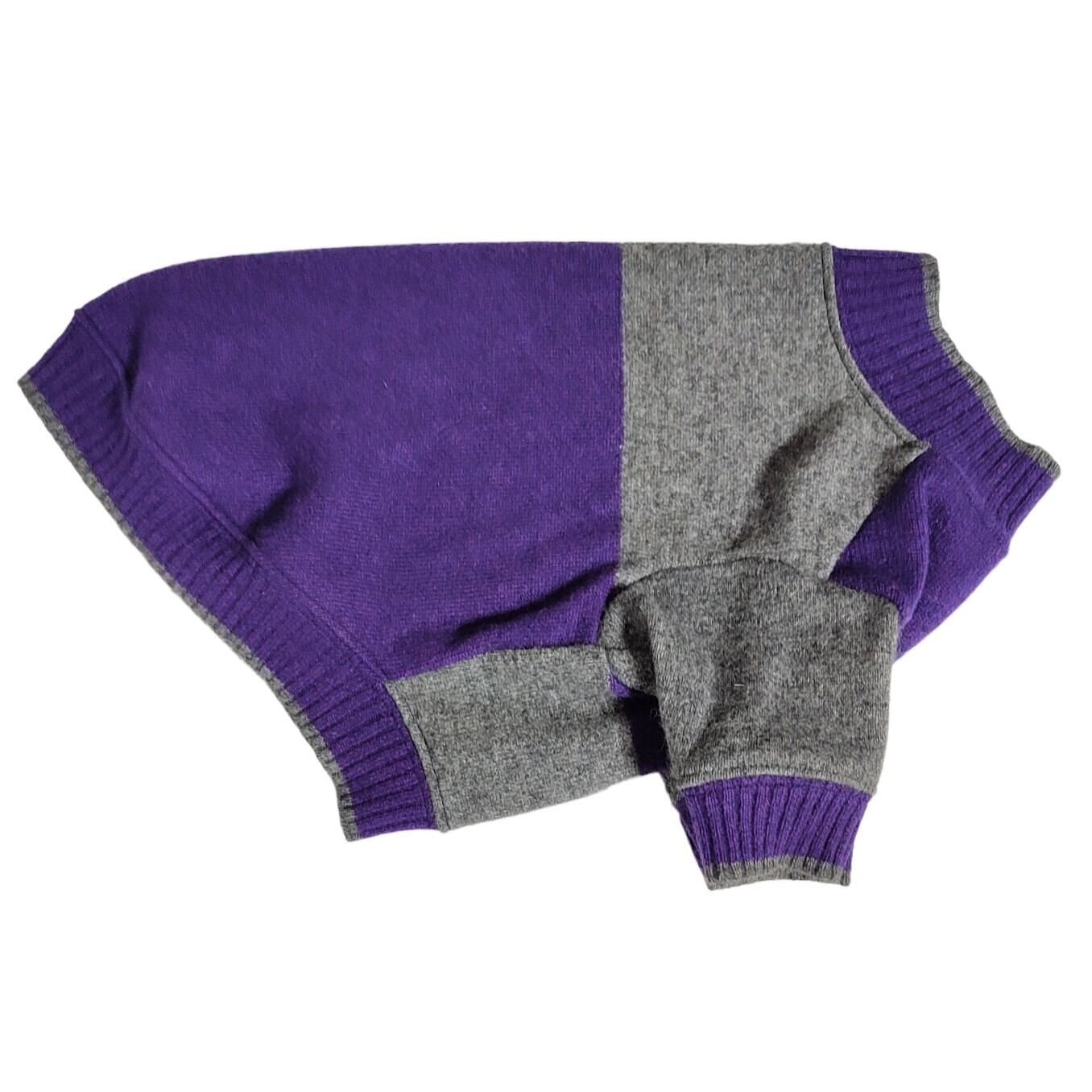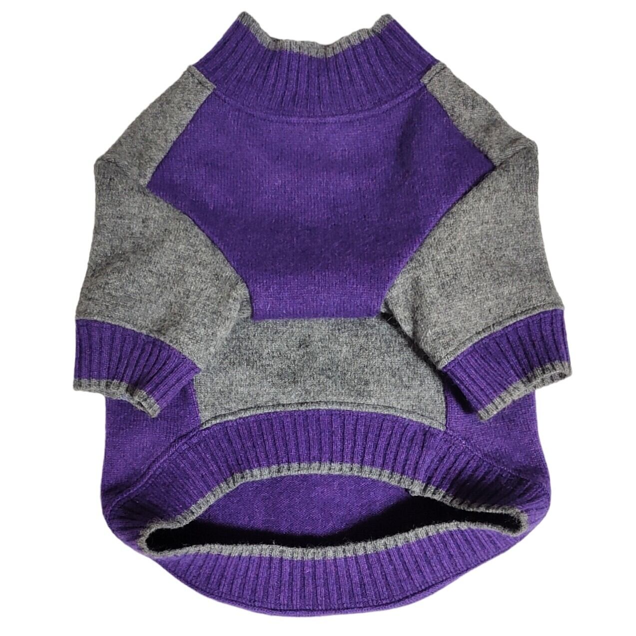 おしゃれなわんちゃんにピッタリな古着リメイクの一点物のバイカラーハイゲージニットです。高級素材でとても軽く柔らく肌触りが心地よい、何度でも着せたくなる一枚です。春ニットなので長いシーズン活躍できるアイテムです。