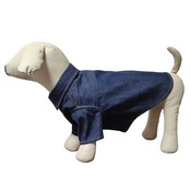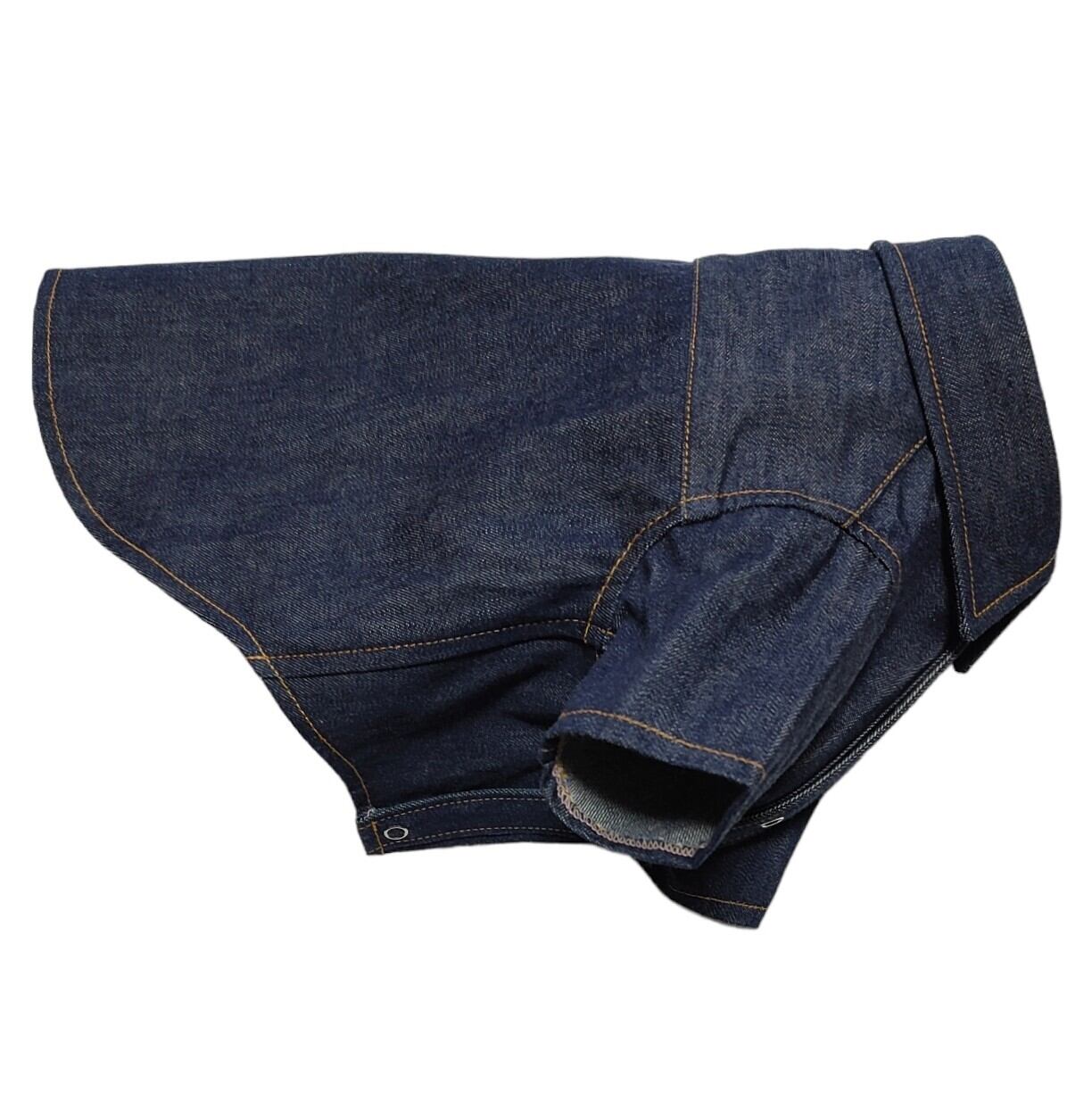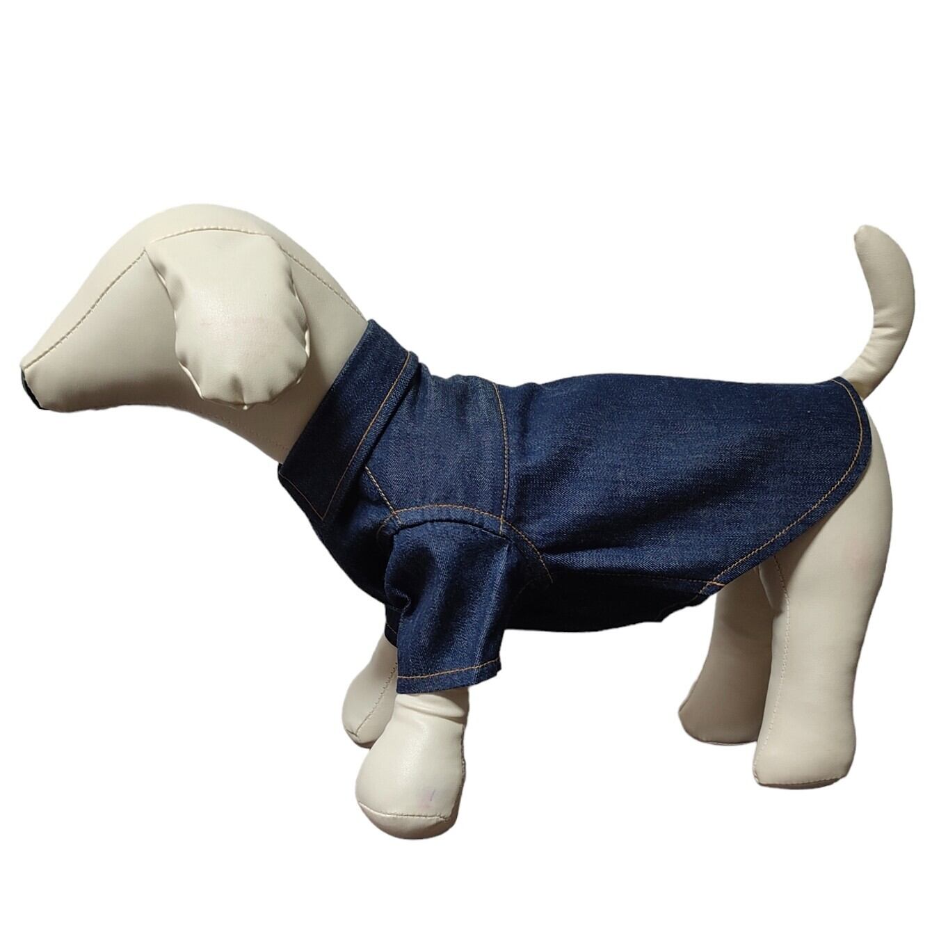 このデニムシャツはわんちゃんにぴったりのサイズ感とスタイリッシュなデザイン、シャツとしては最厚手の10オンスを使用した強固な耐久性にこだわり製作しました。生地は上質な岡山県産セルビッチデニムですので色落ちも期待でき経年変化をお楽しみいただけます。