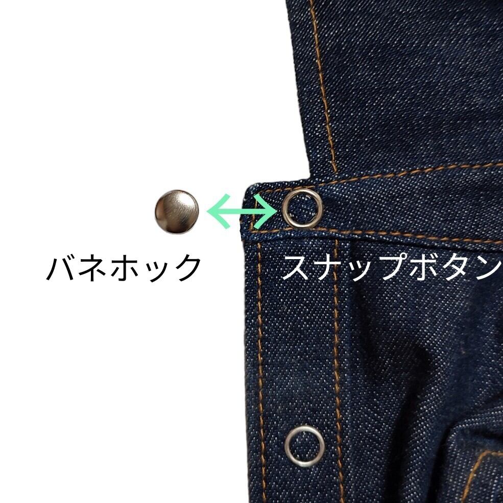 トップボタンに使用していた長爪スナップボタンが生産終了となり以下に変更となります。購入の際にどちらかをご選択ください。(画像9枚目のボタンに変更)